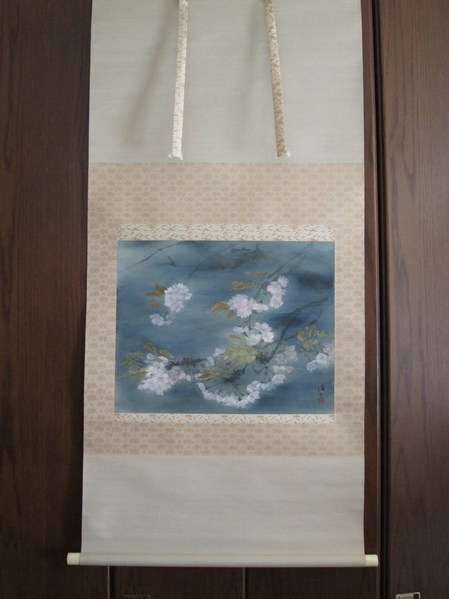 - 【送料無料】★掛軸 真作 ☆池田洛中 夜桜 自画算賛 共箱有