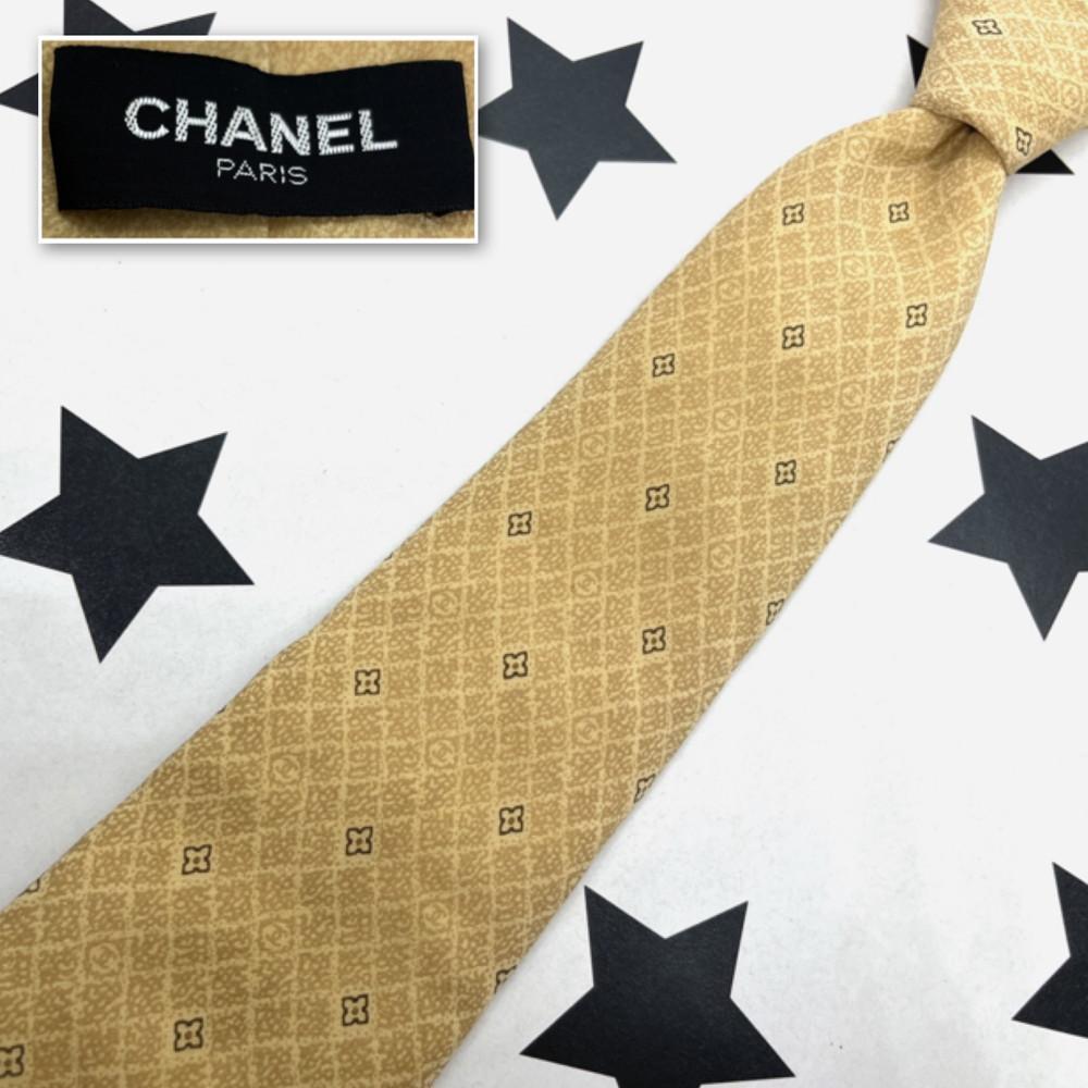 - シャネル ネクタイ 高級シルク イタリア製 ココマーク 黄色 イエロー 格子
