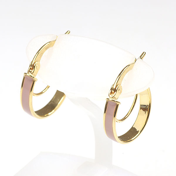 - K18YG エナメル ダブルフープピアス 750YG イエローゴールド ピンクベージュ イタリアンジュエリー 未使用品