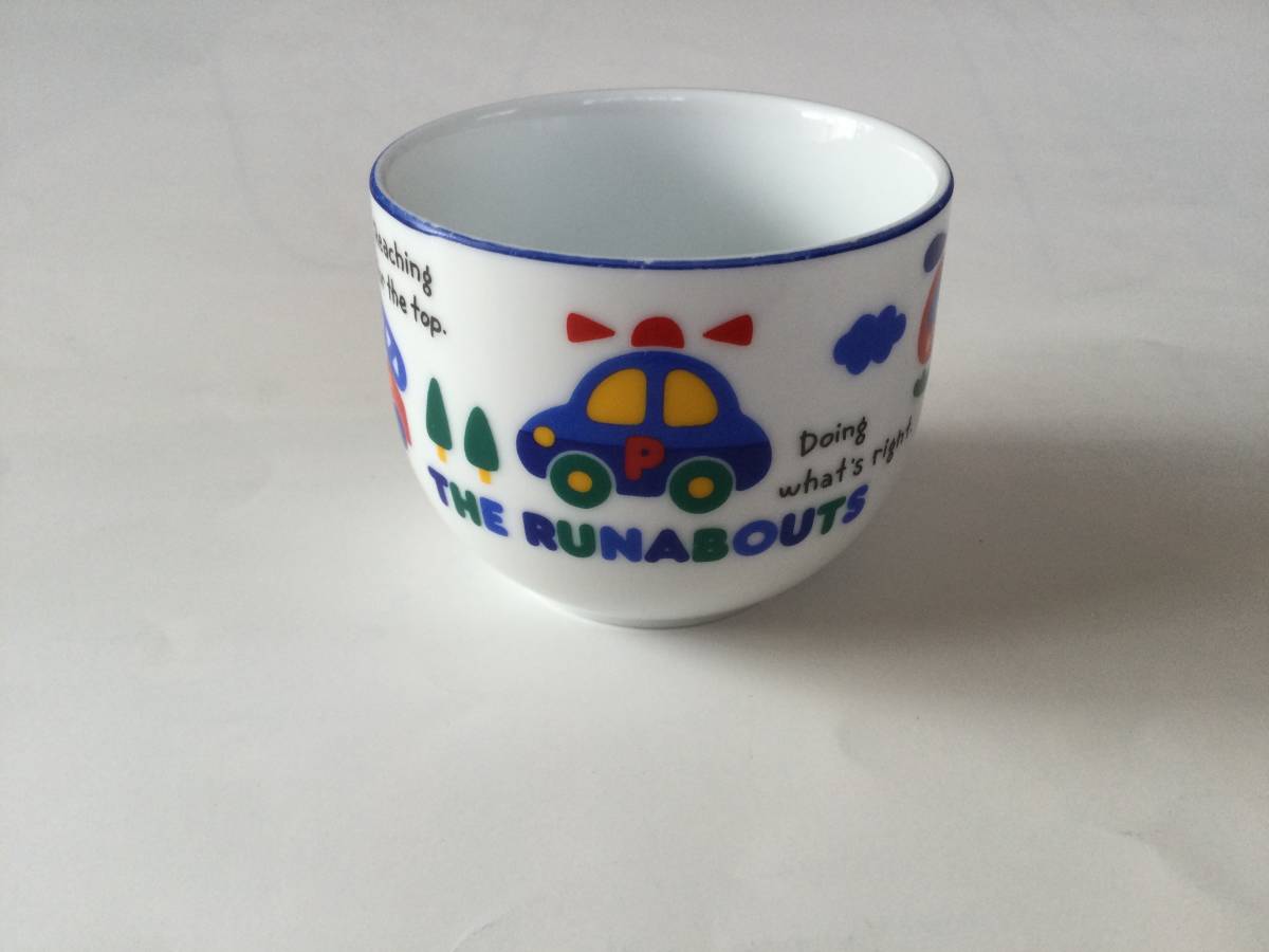 > 1994年 サンリオ ラナバウツ 湯呑み 湯のみ コップ 飛行機 パトカー ヘリコプター f船 のりもの サンリオ旧ロゴ レア