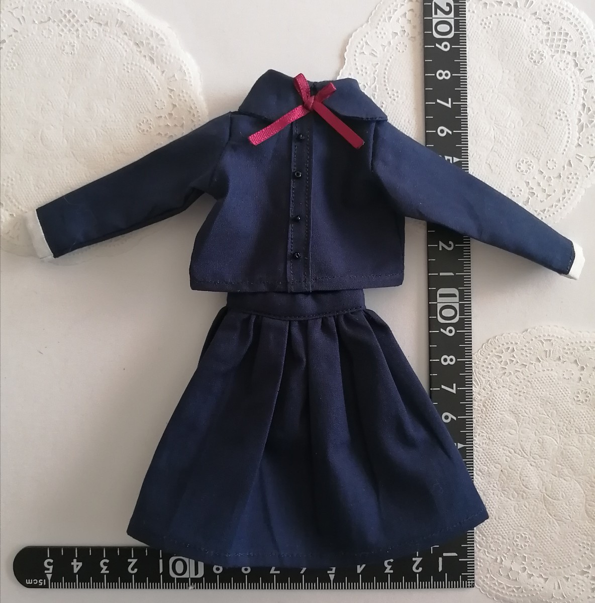 - tia* ドール用 momoko ジェニー TBleague s24 s50 ジャケット スカート セット 学校 制服 スカート お嬢様 1/6ドール 紺色×赤 リボン