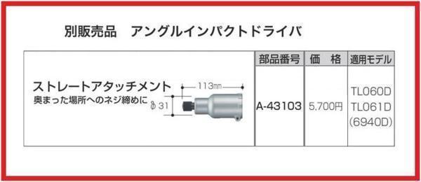 > マキタ ストレートアタッチメント A-43103【アングルインパクト用】■安心のマキタ純正/新品/未使用■