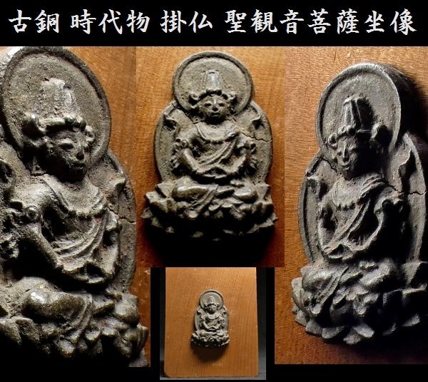 【 恵 #0865 】 古銅 時代物 掛仏 聖観音菩薩坐像 仏像 仏様拍卖