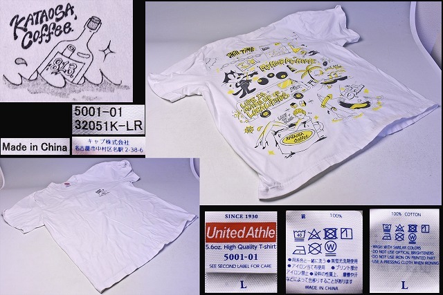 > KATAOSA COFFEE ★ カタオサコーヒー ★ Tシャツ ★ L ★ LIFE IS MADE UP OF LOCALTIMES ★ 5.6オンス ★ 多色刷り ★ 綿100% ★ 中古品