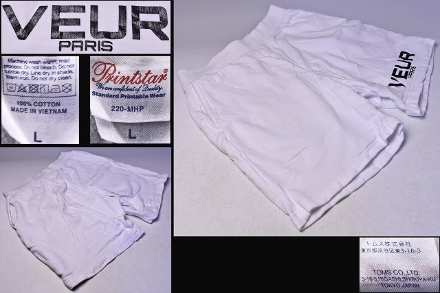 > VEUR PARIS ★ WHITE BASIC HALF PANTS ★ 短パン ★ Lサイズ ★ 白 ★ 綿100% ★ スウェット素材 ★ 中古品 ★