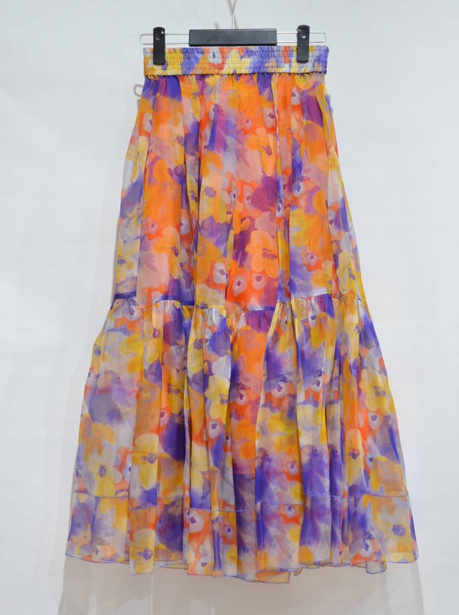 - ブラミンク BLAMINK フラワー プリント シルク ギャザー スカート Y-29366B