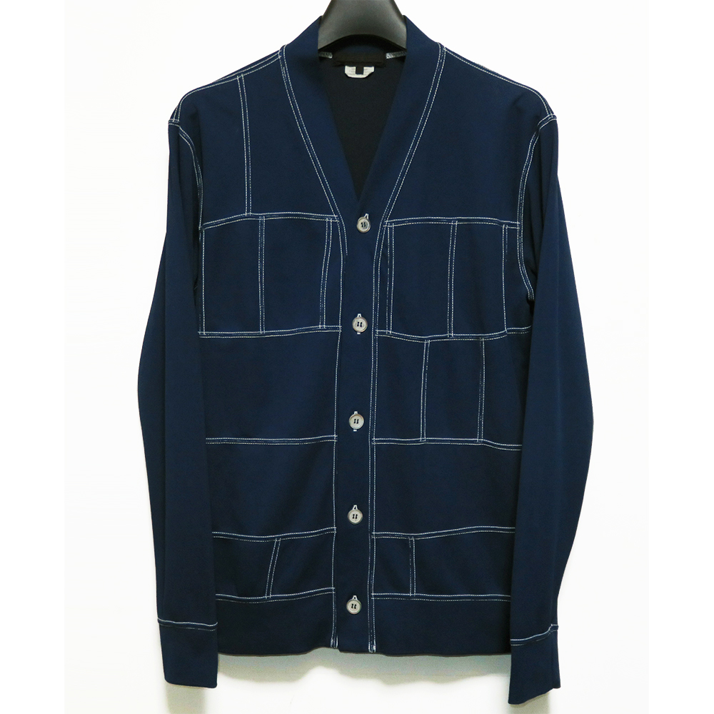 - COMME des GARCONS HOMME DEUX 16AW 加工ポリ ステッチパッチワークカーディガン S 美品 ネイビー 縮絨 コムデギャルソンオムドゥ