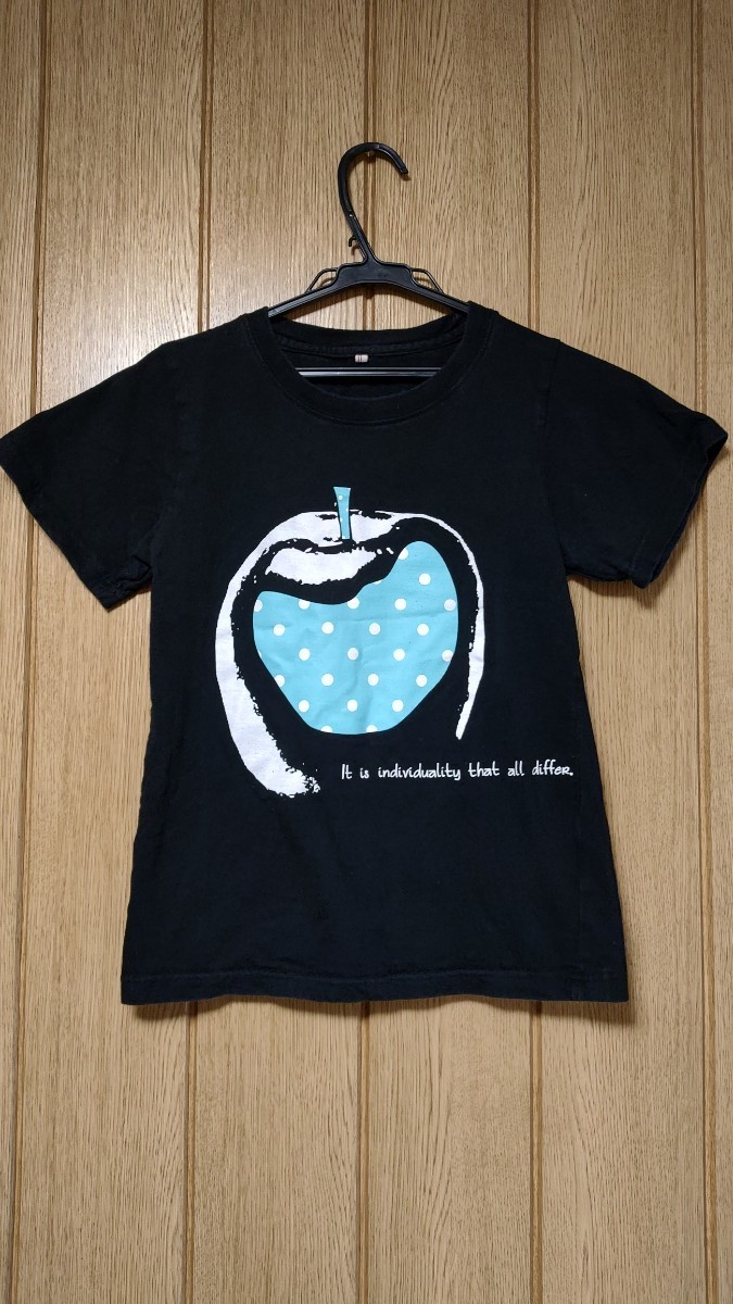 > 中古 服 半袖 アップル Apple イラスト Tシャツ バスト 79-87 Mサイズ 着丈 約53㎝ ブラック かわいい 水玉 ドット