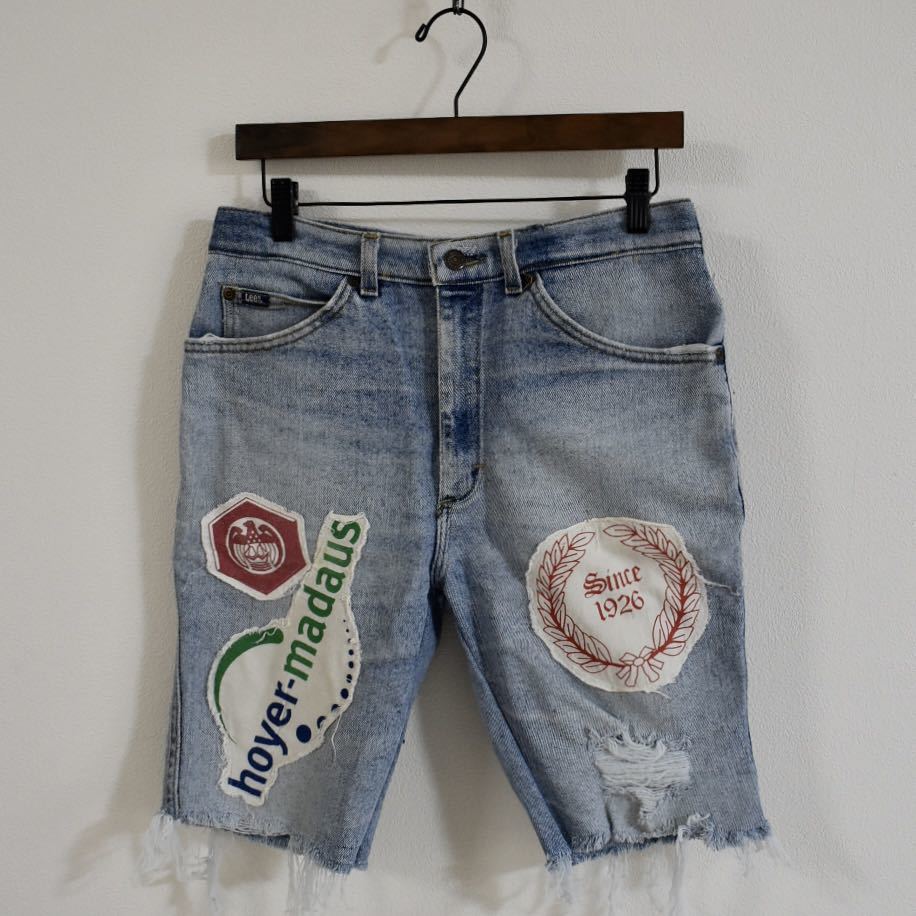 - remake Lee パッチワーク ショートジーンズ プリント クラッシュ加工