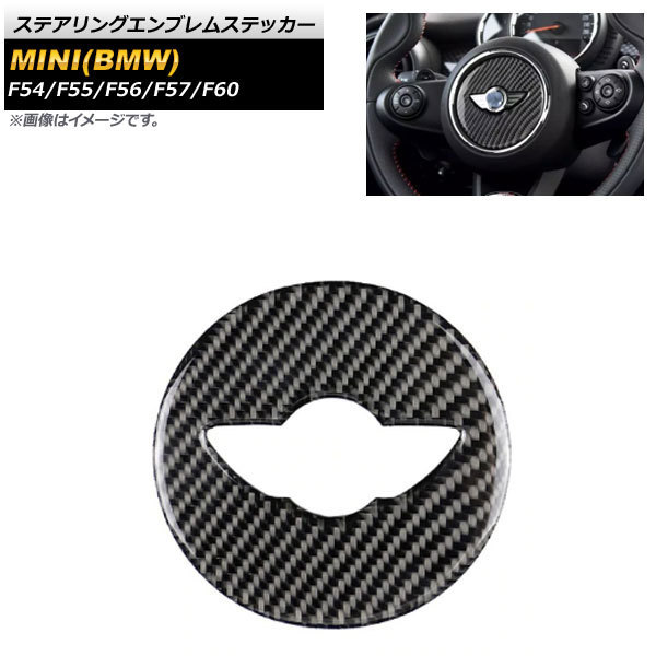 - ステアリングエンブレムステッカー ミニ(BMW) F54,F55,F56,F57,F60 2014年04月~ ブラックカーボン Aタイプ AP-IT854-A