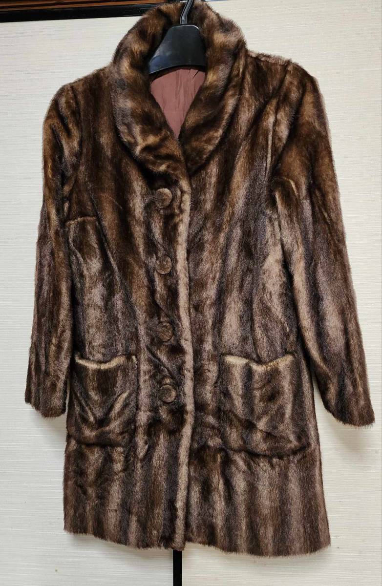 - 昭和レトロ 当時物 くるみボタンフェイクファーコートレディスM美品