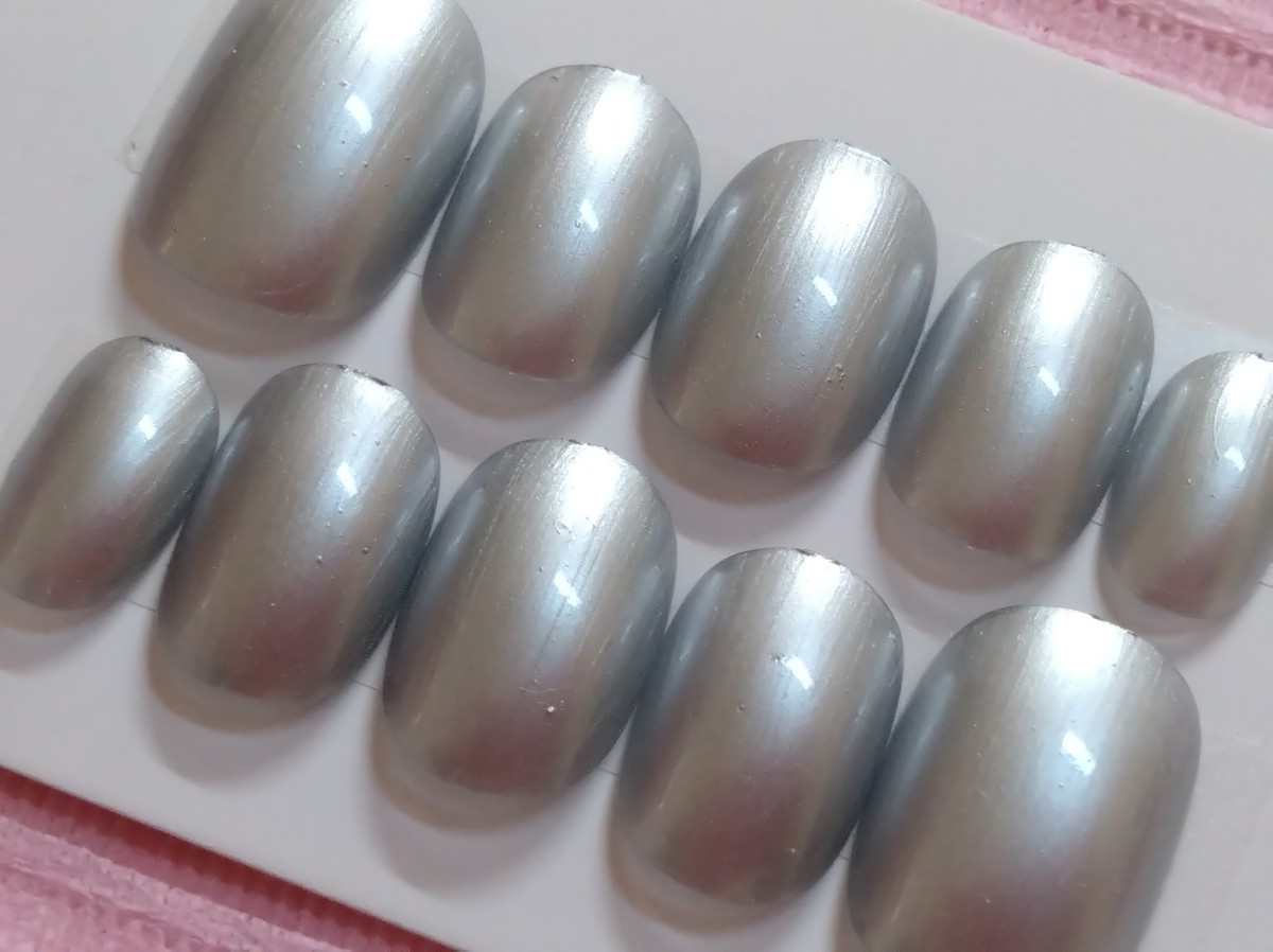 - Mサイズベリーショート・シルバーカラーリングネイルチップメタリック付け爪ハンドメイド