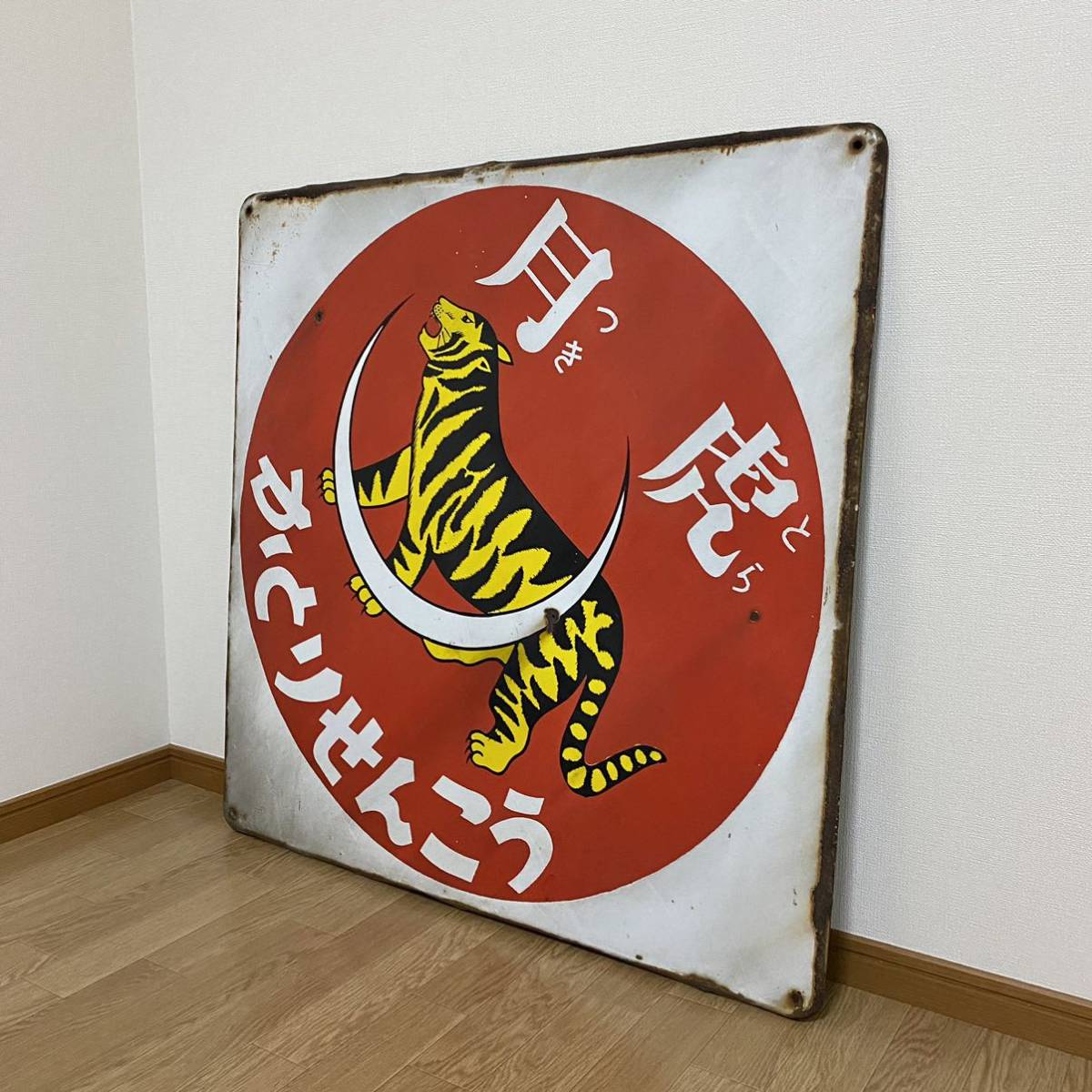 - 希少 ホーロー看板 月虎 かとりせんこう 約90×90㎝ / 琺瑯 大型看板 つきとら 昭和レトロ アンティーク