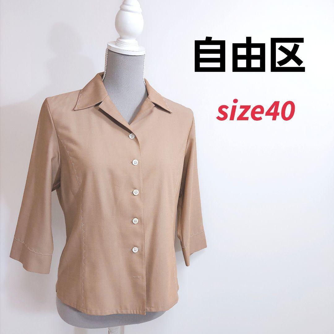 - 自由区 オープンカラー 薄手シャツ ジャケット・羽織り・ベージュ 表記サイズ40 L オンワード樫山 81171