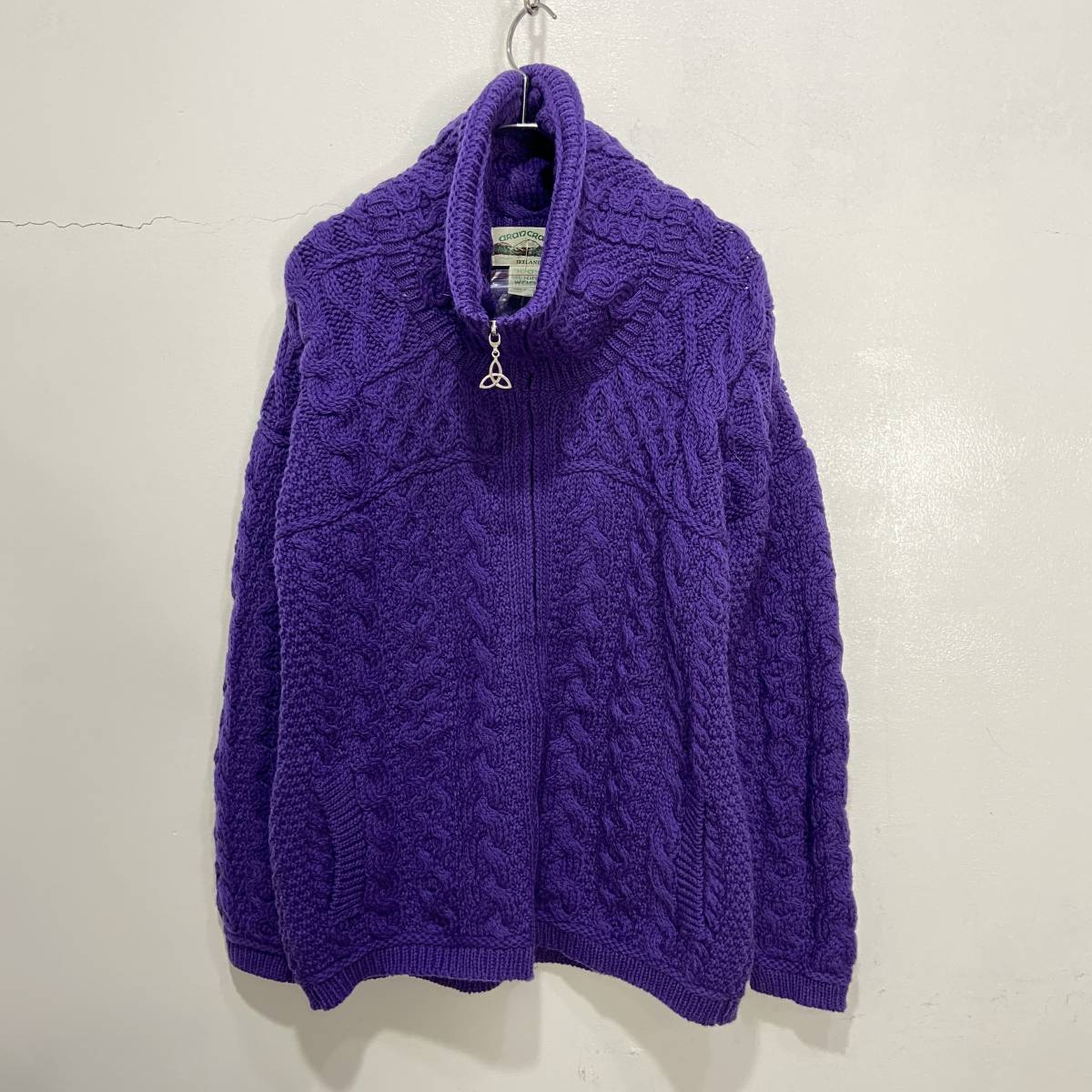- 送料無料☆美品☆Aran Crafts☆アランクラフト☆スタンドカラーウールジップカーディガン☆フィッシャーマンニット☆紫☆レディースS☆K23