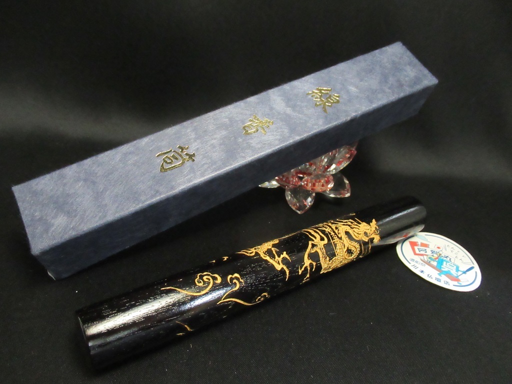 - 特注品「龍彫/線香筒/木製黒塗/6.0寸/金粉仕上」長さ約20.2cm/干支/竜彫/彫刻/川本仏/川本仏壇店