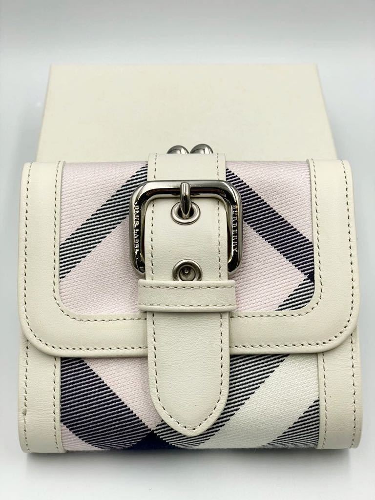 - 未使用品 バーバリー ブルーレーベル 二つ折り財布 ホワイト ピンク チェック 小銭入れ付き レディース カードケース