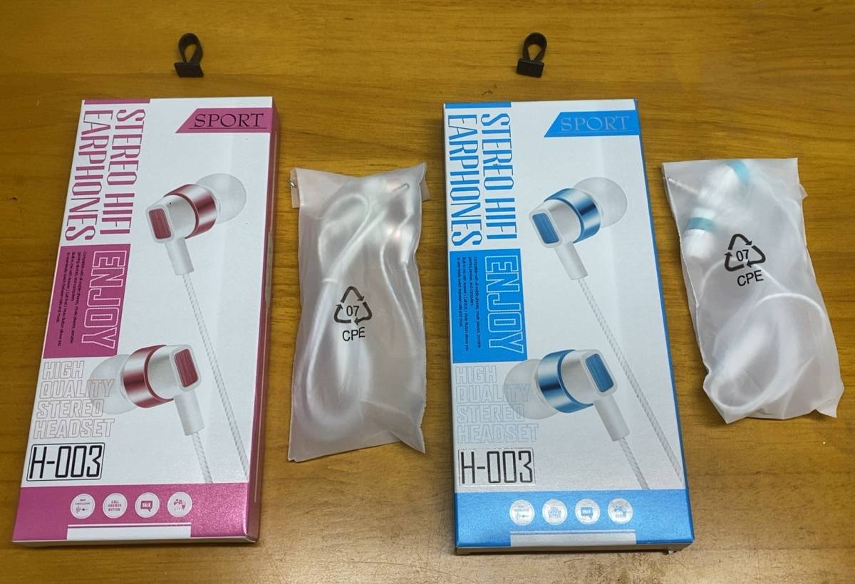 - 送料無料 2個セット 新品 イヤホン H-003 ヘッドフォン まとめて スポーツ 送料込み 1.3m スピーカーサイズ 10mm お揃い