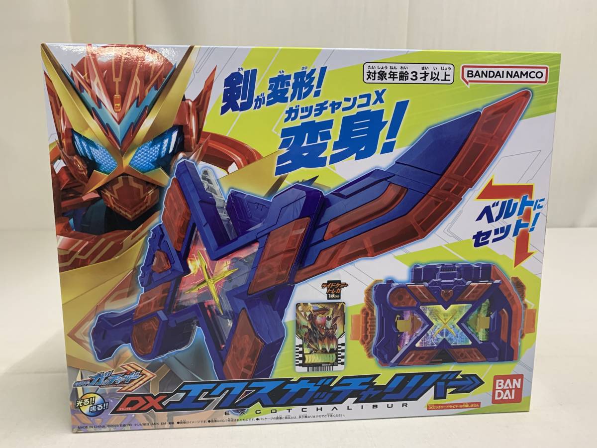 - 仮面ライダーガッチャ⇒ド 光る!!鳴る!!DXエクスガッチャリバ⇒ 剣が変形!ガチャンコx変身!ベルトにセット!