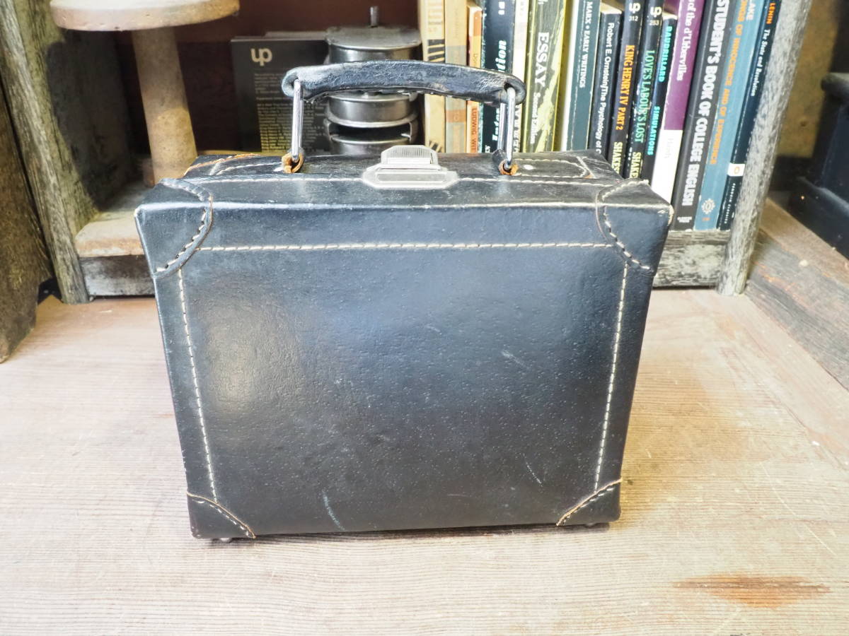 - 【本革のミニトランク】レザー鞄ポーチ旅行ドクターバッグセカンドバッグインテリア収納ケース古道具アンティーク古着インダストリアル
