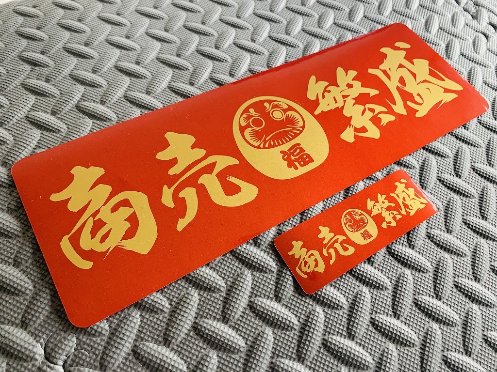 > 送料無料【デコトラ オーダー 防水ステッカー】2枚セット 赤/金文字 商売繁盛 ダルマ 雲龍体 デコトラ スクリーン アンドン