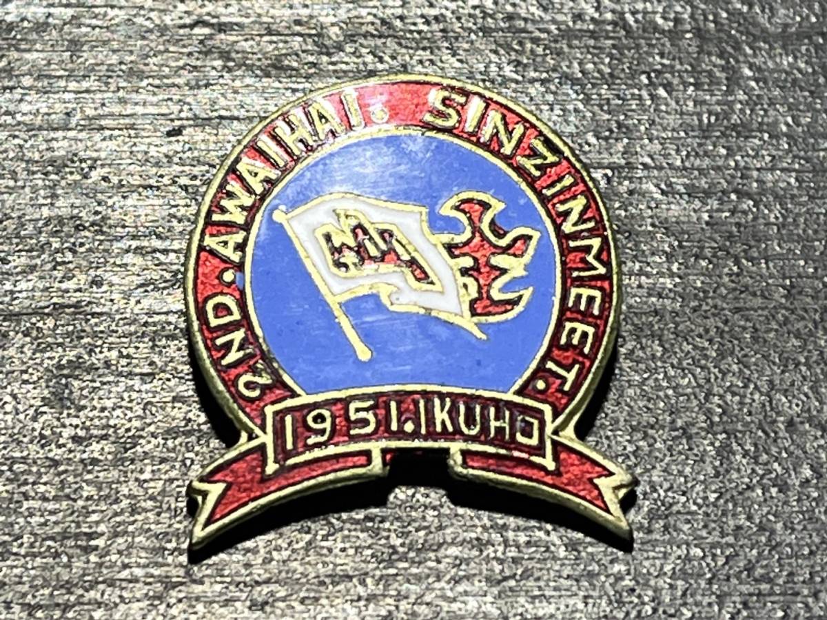 > ・ 雑貨★SPB85 2ND .AWAIHAI. SINZINMEET. 1951.IKUHO ピンバッジ 昭和 レトロ ピンズ ビンテージ 陸上 ピンバッヂ