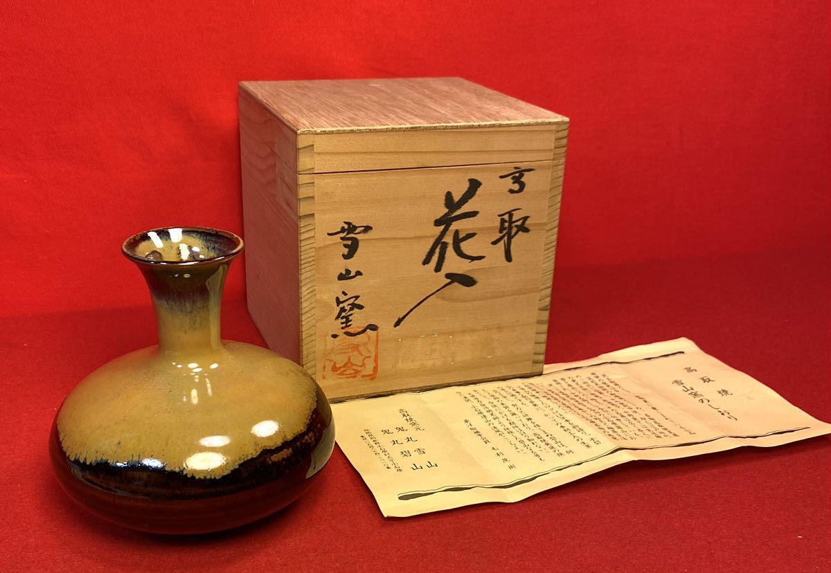 - 【花を楽しむ】茶道具『高取焼 鬼丸雪山 「雪山窯」陶印あり 花入』共箱 在名 栞付き 花瓶 酒器 徳利 茶会 茶の湯 侘び寂び 和の色 華道