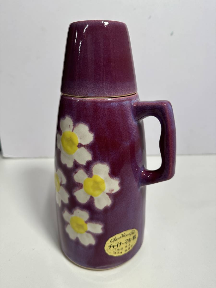 > ★コレクター必見!! チャイナ―マホー瓶 保温 保冷 清水焼 陶泉作 花柄 ピッチャー レトロ お洒落 容器 約0.7L コレクション W112903