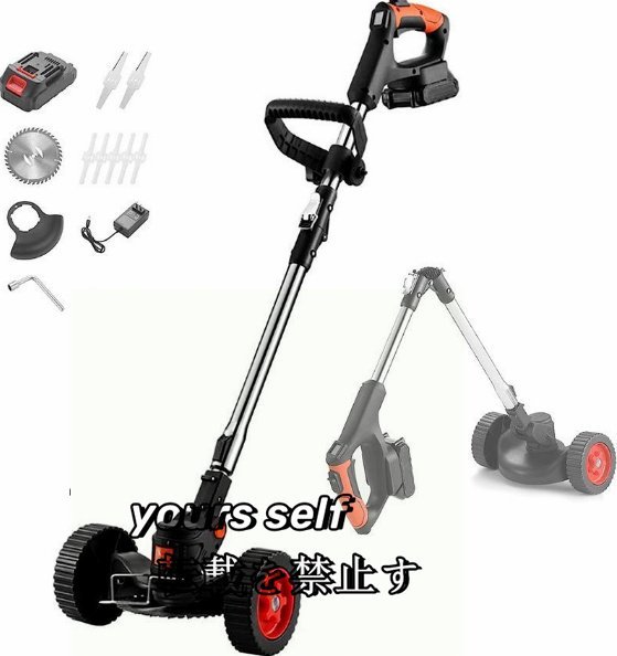 - 高品質電動草刈り機 コードレス草刈機 伸縮式 折りたたみ プッシュ式芝刈り機 替え刃3種類 角度調整 電池残量表示 軽量 静音 21v 2000mah