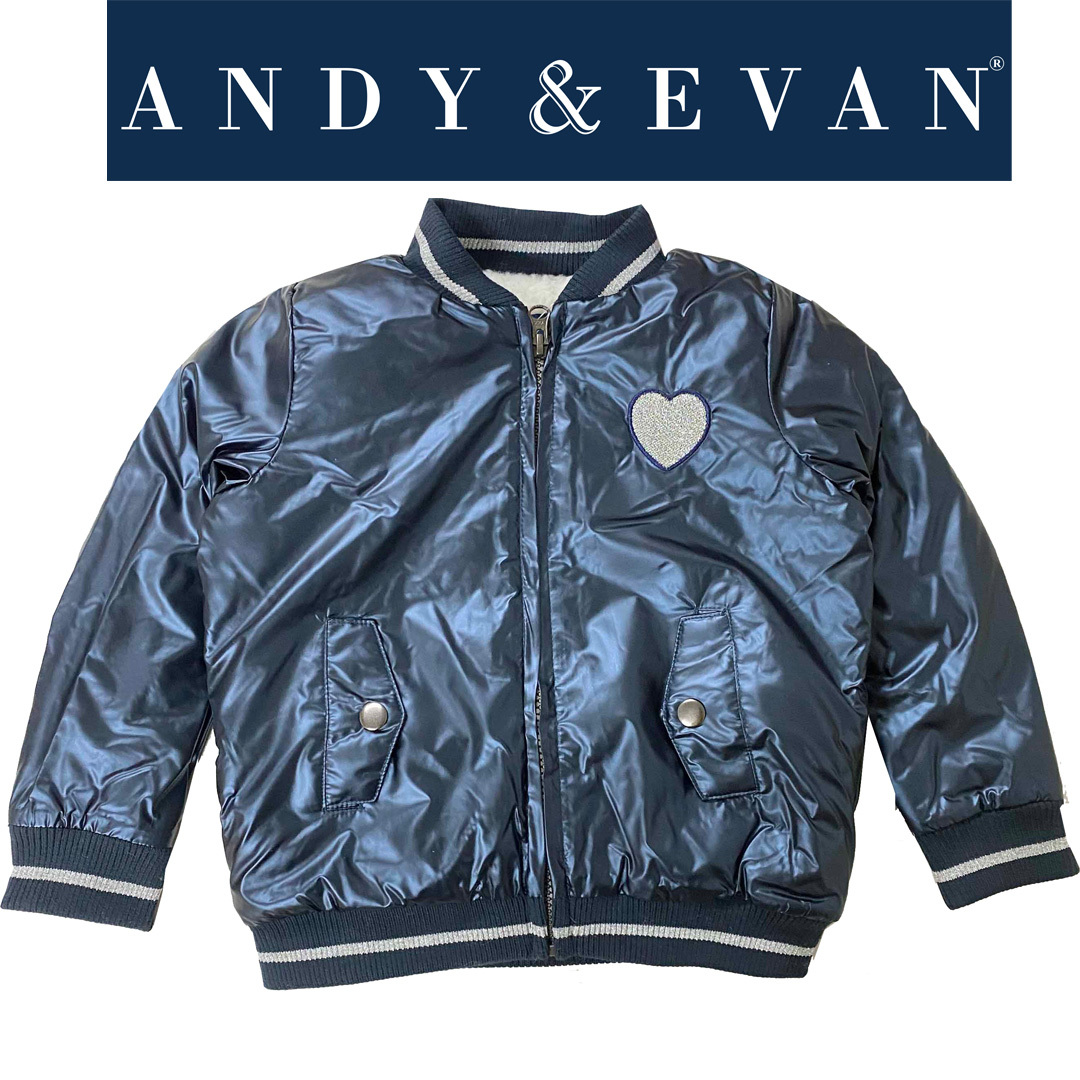 - 新品 110 ★ コストコ andy&evan ガールズ ジャケット 4T 裏ボア メタリック ネイビー ハート フルジップ ジャンパー ふわふわ もこもこ