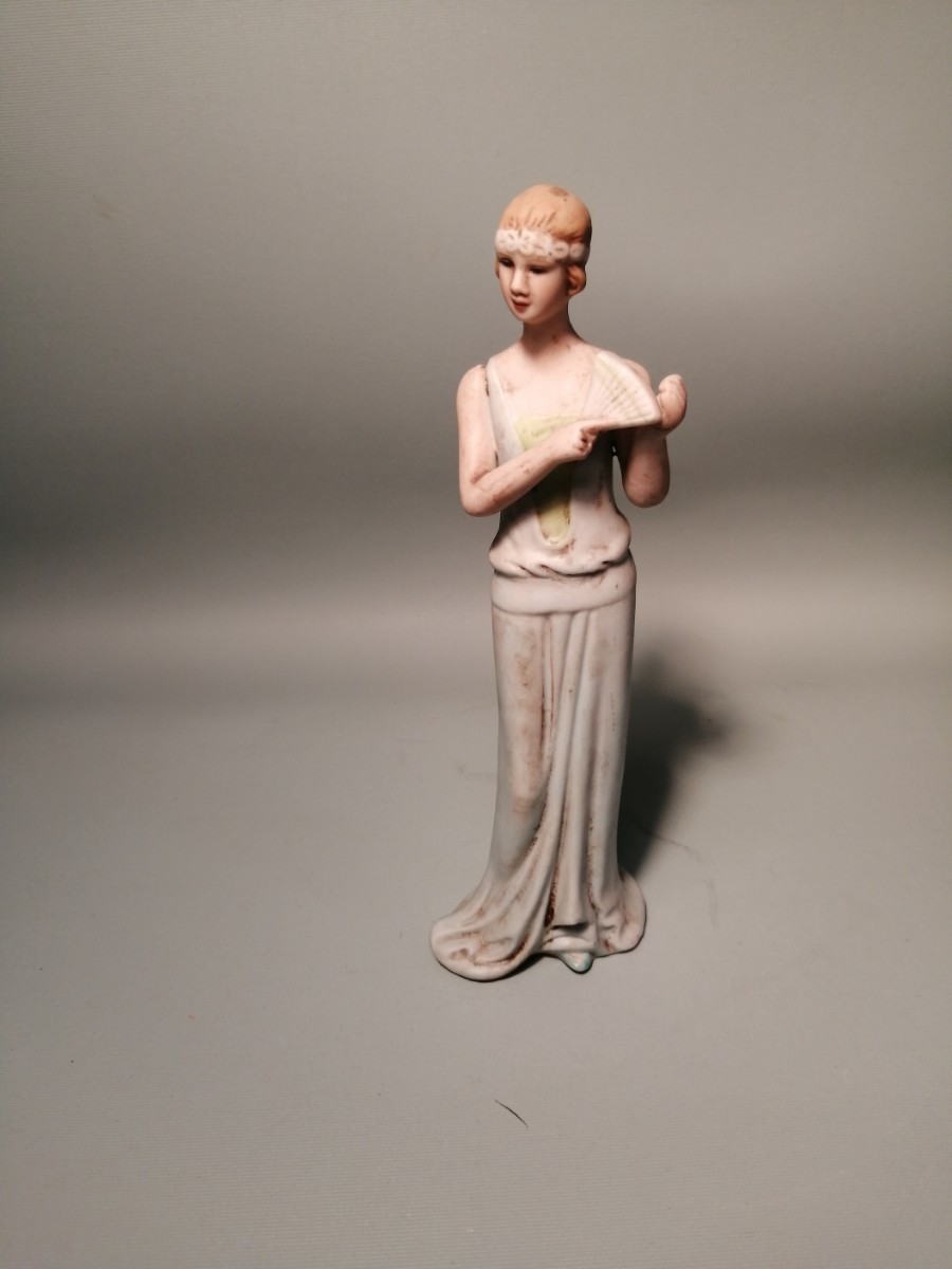 - 扇子を持つ 女性像 1950年代 イギリス 陶器 置物 人物 人形 オブジェ アールデコ 高さ14.5㌢ 13AC29L1