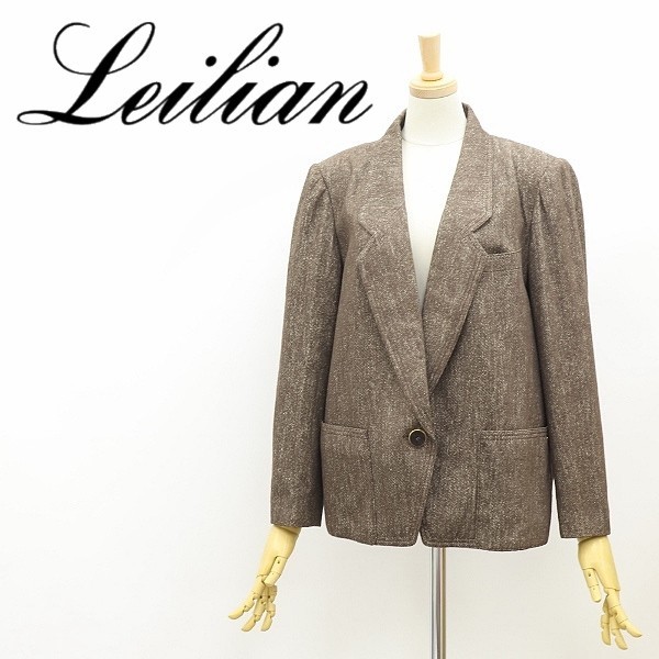 > ◆Leilian レリアン E sports シルク100% ツイード 1釦 ジャケット 茶色 ブラウン 13+ 大きいサイズ