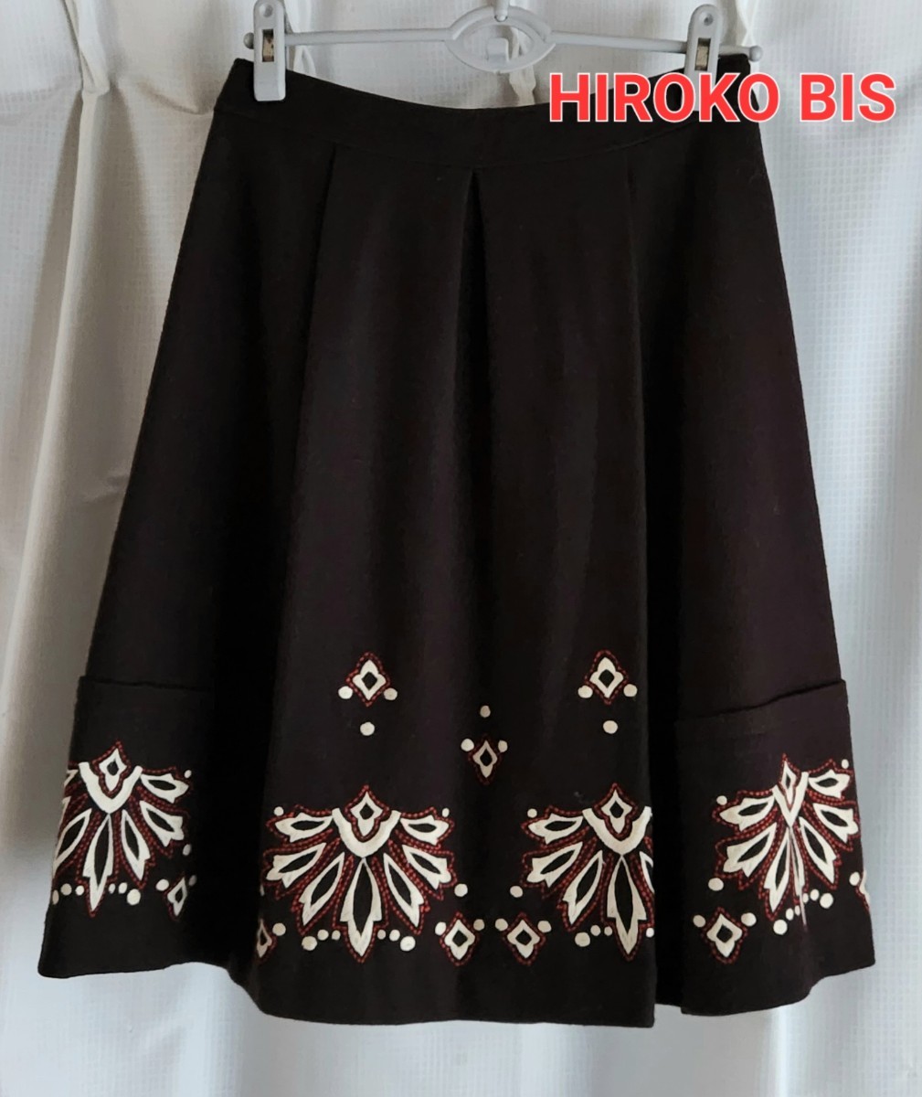 - 美品 クリーニング済み HIROKO BIS 可愛い刺繍付きウールスカート ひざ丈 フレアスカート