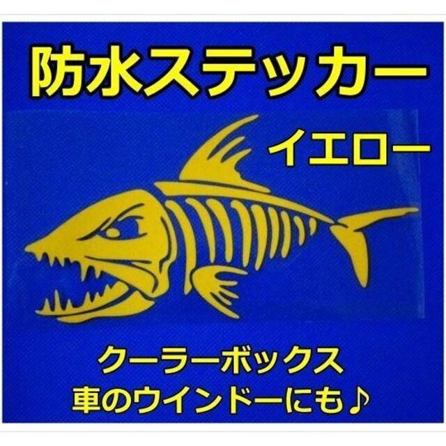 - 魚 防水ステッカー(左向イエロー)骨 釣り クーラーボックス 釣り道具 シール