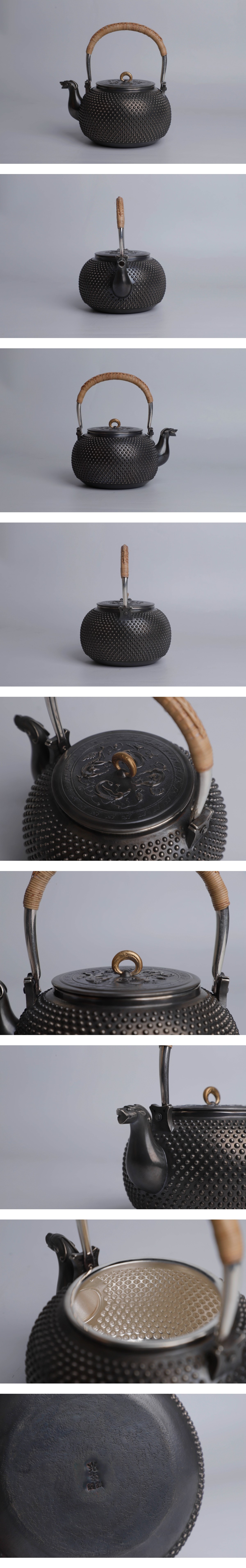 - 時代 純銀製 光南造 玉霰打出 あられ 獣口湯沸 工芸品 古美術品 銀瓶 煎茶道具 重さ827G