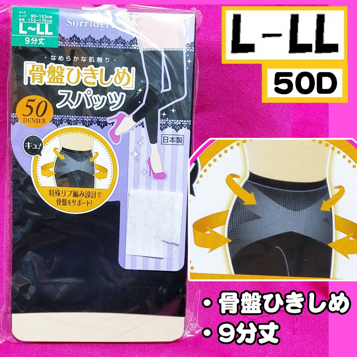 - 匿名★同梱歓迎【ZZZ】★ソリデル 骨盤ひきしめ スパッツ 9分丈 50デニール タイツ ストッキング パンスト L-LL 黒 日本製