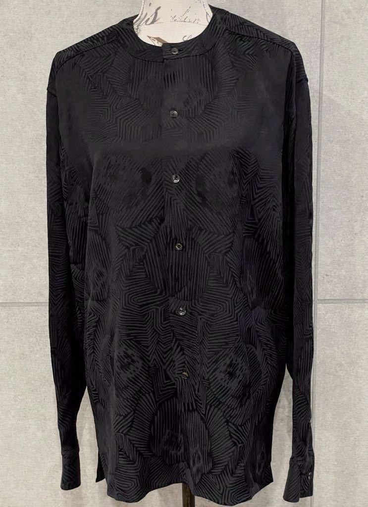- 上質高級! 日本製 TAE ASHIDA タエアシダ 長袖 ノーカラーシャツ 総柄 ブラック 黒 Fサイズ フリー レディース ジュンアシダ ○ 新規×