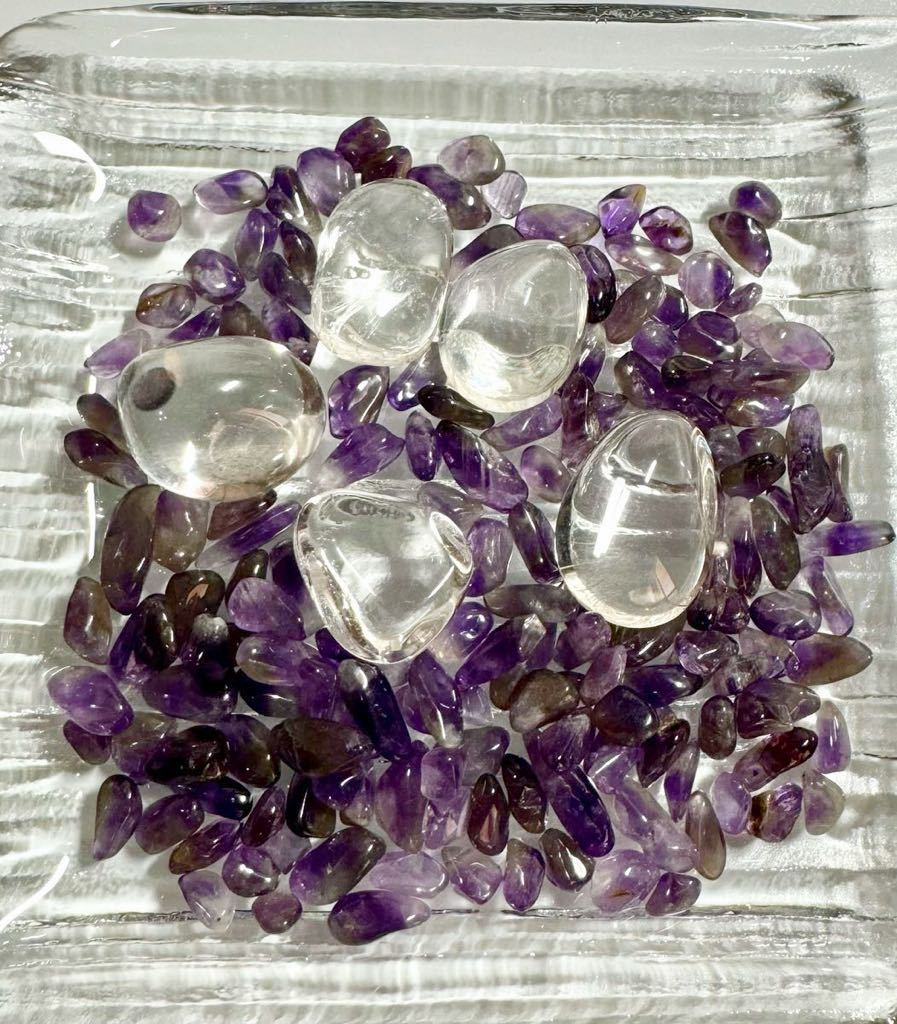 - ■ アメジスト & 高品質 ヒマラヤ産水晶タンブル 浄化セット☆。.:*・゜インテリア 天然石 さざれ石 水晶 ④