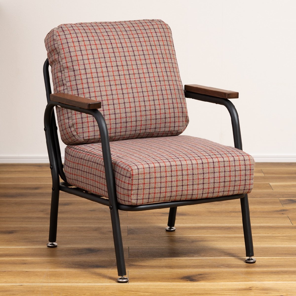 - レトロ モダン チェック柄 おしゃれ 可愛い コンパクト 肘付き パイプ シングルソファ ソファ 1人掛け RKC-101GY