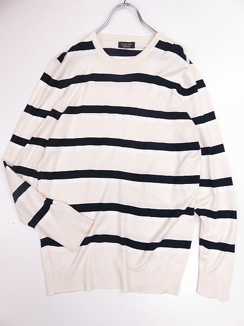 - 【送料無料】ザラ ZARA 長袖ニットカットソー ボーダー ストレッチ素材 黒 白 ベージュ M