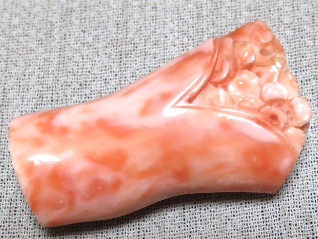 - 珊瑚 ブローチ 花 彫刻細工 サンゴ アクセサリー アンティーク Mその1