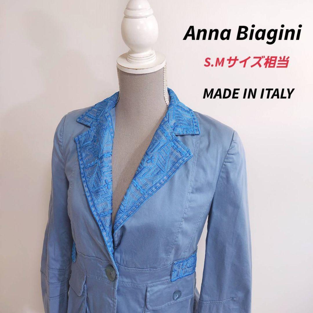 > Anna Biagini 刺繍デザイン・コットン素材ジャケット 水色 イタリアのサイズ42 S.Mサイズ相当 イタリア製 67668