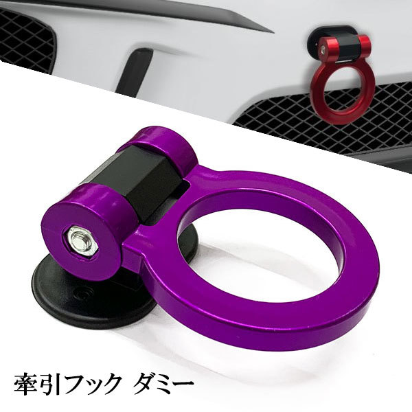 > ダミー牽引フック 可倒式 ドレスアップ 汎用 フロント リア対応 ABS樹脂ステッカー 貼り付け 車 カスタム 角度調整 丸型 パープル