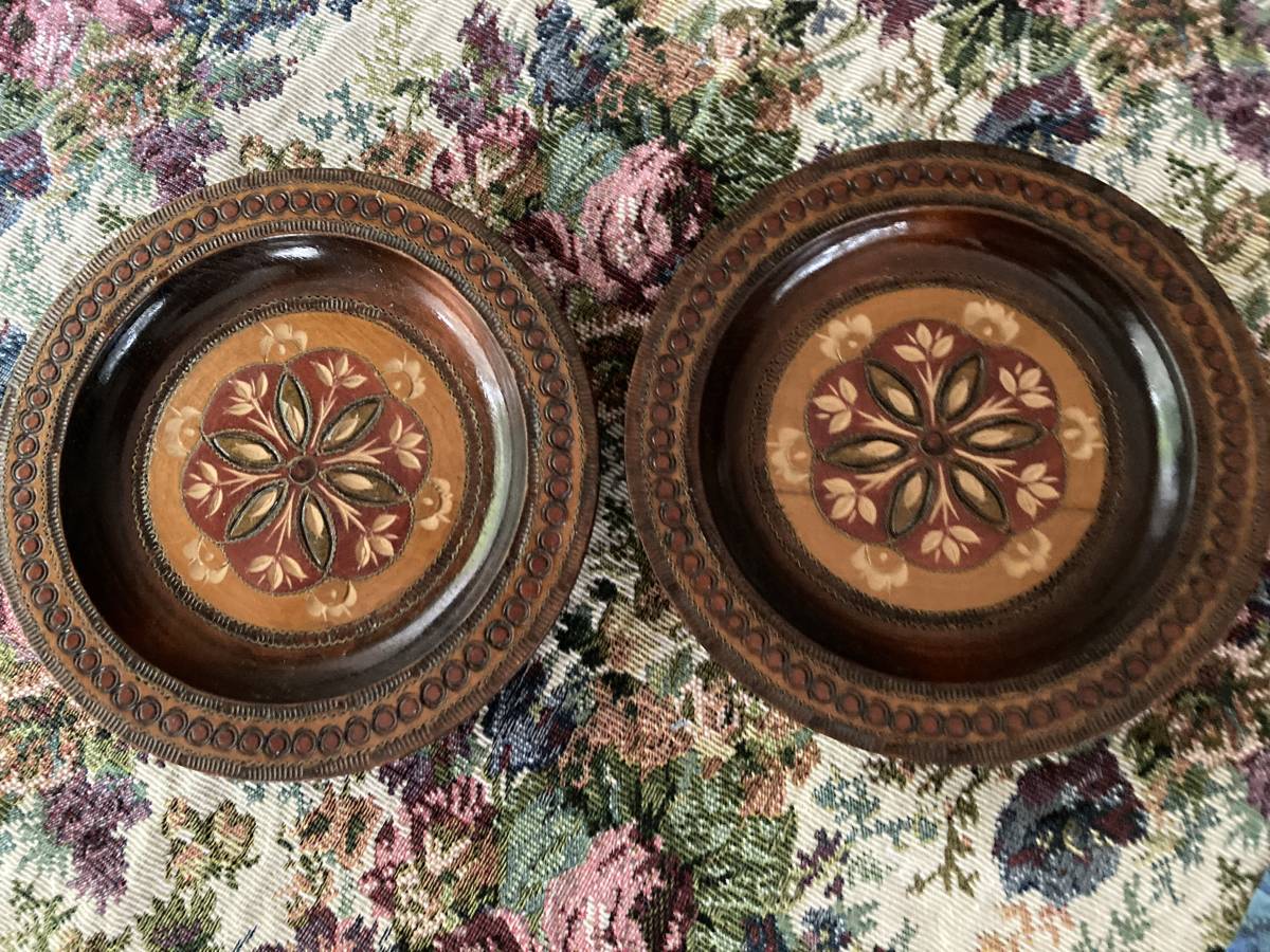 - 黒い森 ドイツ 木皿 飾り皿 2個セット 自宅保管品 木彫り 皿 直径約16.5㎝ 裏金具付き