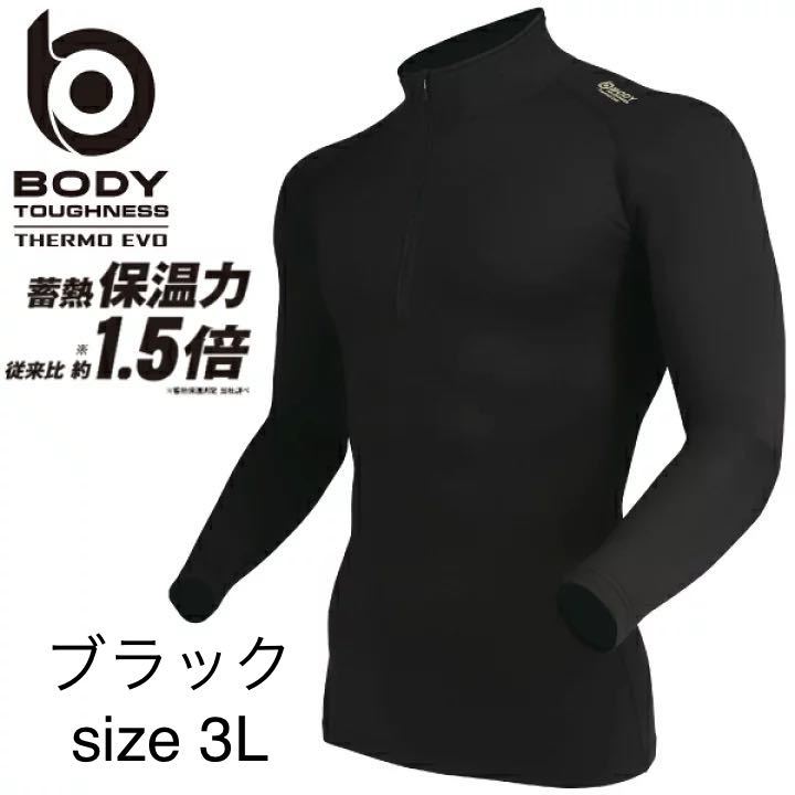 > 新品未使用 ブラック 3L BTパワーストレッチ 蓄熱保温 速乾 全面消臭 サーモ エボ ハーフジップ ハイネックシャツ JW-247