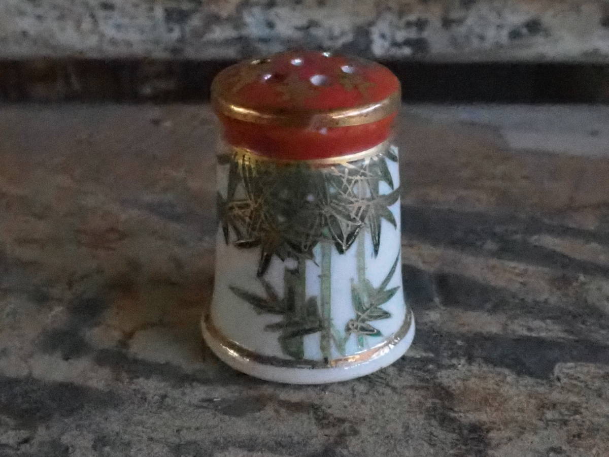 - 【九谷焼陶製塩コショウ入れ】手描き昭和コルク栓古道具アンティーク骨董インテリア調味料インダストリアル赤絵上絵付け焼き物陶磁器白磁