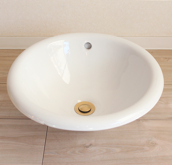 - 陶器製 クリーニング済 輸入洗面ボウル 真鍮パーツ 099