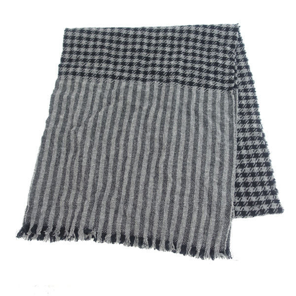- ★ コーチ 千鳥格子 ストライプ マフラー ウール カシミヤ ブラック グレー (0220475500)