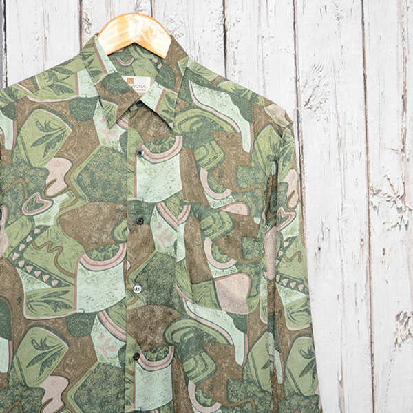 - AS5758N ROZA&VIORA 長袖シャツ M 肩46 総柄 個性派古着 メール便 xq