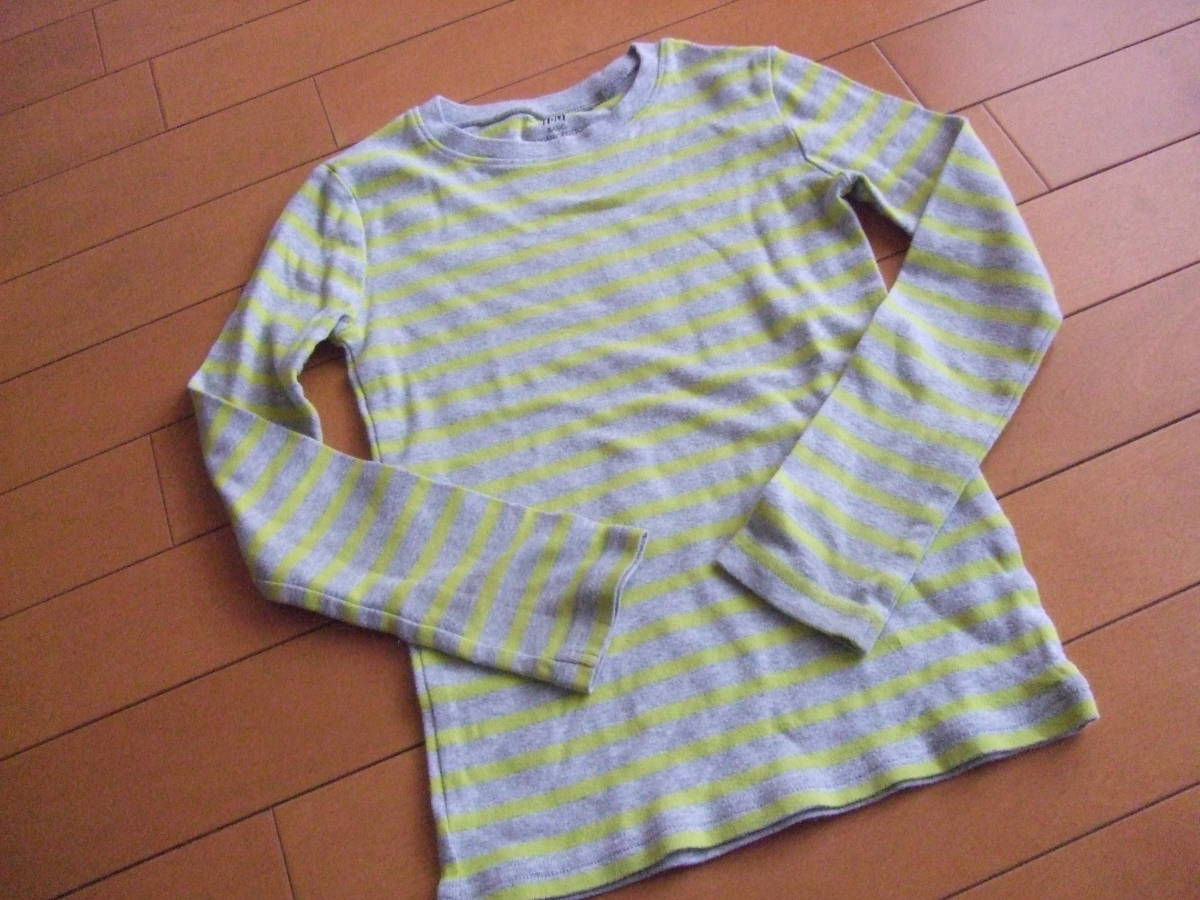 - ユーズド送料込即決☆H&M イエロー×グレー オーガニックコットンボーダーカットソー☆6~8Y 122/128